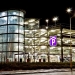 De glazen lift schacht van de parkeergarage.